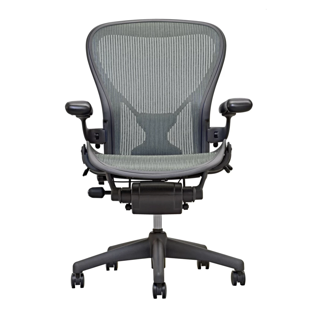 Aeron office chair revolutionized office seating with its defining design qualities: the pioneering Pellicle suspension material and its patented Lumbar back support, which affords the ideal sit — chest open, shoulders back, pelvis tilted slightly forward. Combining a deep knowledge of human-centered design with cutting-edge technology, the classic Aeron chair is engineered with state-of-the-art adjustability, from the arms, seat height, depth, and recline, to help you maintain the optimal seating posture so you can focus on the task at hand. And it comes available in three chair sizes, offering the most comfort to the largest range of users.