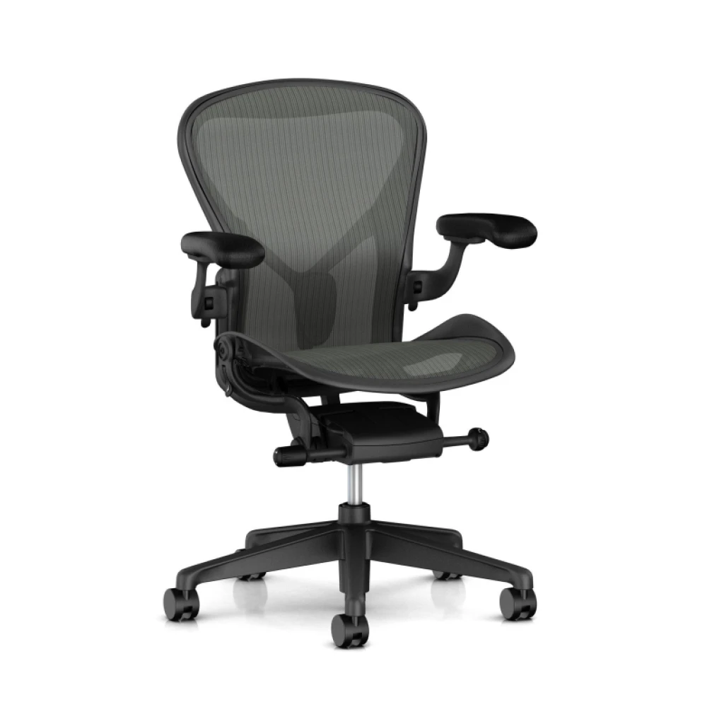 Aeron office chair revolutionized office seating with its defining design qualities: the pioneering Pellicle suspension material and its patented Lumbar back support, which affords the ideal sit ā chest open, shoulders back, pelvis tilted slightly forward. Combining a deep knowledge of human-centered design with cutting-edge technology, the classic Aeron chair is engineered with state-of-the-art adjustability, from the arms, seat height, depth, and recline, to help you maintain the optimal seating posture so you can focus on the task at hand. And it comes available in three chair sizes, offering the most comfort to the largest range of users.