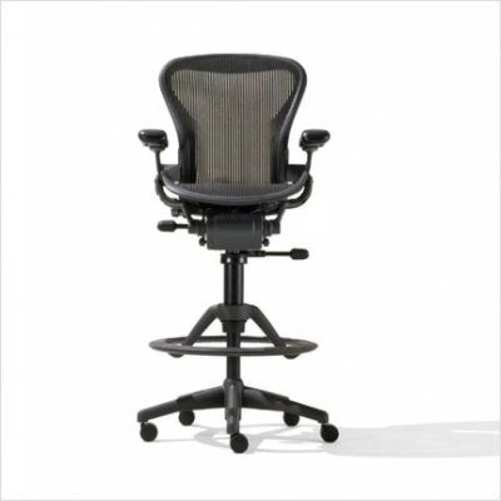 Aeron Fully Loaded Work Stool by Herman Miller āĀ Aeron Chairs are state of the art assertions of elegance and ergonomic design, born from the creative and exacting minds at Herman Miller. The Aeron is at the vanguard of luxury and cutting edge technology. Used widely in fortune 500 companies and Hollywood sets, this chair is amongst the most popular in the market today. In addition to the cast of impressive features that are always associated with Aeron chairs, the Aeron Fully Loaded Work Stool has a Fine-Tune footring. It has a ribbed profile to ensure that feet donāt slip off and once set to the desired position, the foot-ring will maintain its distance from the seat regardless of height adjustments. The innovative design of the Aeron chair makes it ideal for office receptions, banking and retail, and health and science labs. The strong suspension distributes your weight evenly over the back and seat while conforming to your body type. Its fashion inspired ergonomic mesh seat and backrest relieves pressure on your upper and lower back, legs, and torso, enhancing your feeling of overall wellness. Aeron remains the leader in design and comfort. Your body is ever-changing and adapting to its environment, and the Aeron chair does so as well.